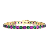 These 18k Yellow Gold bracelets feature fine quality Amethyst gemstones. This Timeless Tennis Bracelet Elevates The Classic Style with Oversized Gems, Each One Meticulously Set in A Secure Four-prong Setting. It's An Audacious Yet Sophisticated Way To Add instant Brilliance To Any Outfit. Free shipping, returns, and a lifetime warranty make luxury worry-free