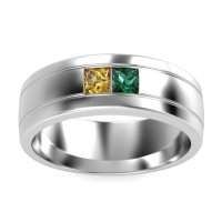 This mens Citrine ring features AAAA gemstones, along with fine quality Emerald. This mens 14k White Gold ring will stand the test of time, mirroring the bond it symbolizes. This Modern Men's Band Features A Striking Three-row Design with Two Princess-cut Stones Set in A Central Alignment, Creating A Contemporary Aesthetic. Unique mens wedding bands say what words can't - about his style, his passions, his love. Choose from a variety of gems and metals to make custom rings for men! Free shipping, returns, resizing, and a lifetime warranty make choosing this product easy.