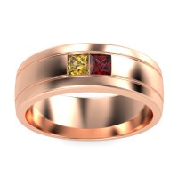 This mens Citrine ring features AAAA gemstones, along with fine quality Ruby. This mens 14K Rose Gold ring will stand the test of time, mirroring the bond it symbolizes. This Modern Men's Band Features A Striking Three-row Design with Two Princess-cut Stones Set in A Central Alignment, Creating A Contemporary Aesthetic. Unique mens wedding bands say what words can't - about his style, his passions, his love. Choose from a variety of gems and metals to make custom rings for men! Free shipping, returns, resizing, and a lifetime warranty make choosing this product easy.