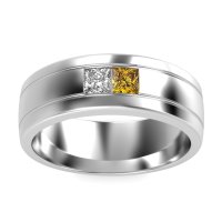 This mens Diamond ring features AAAA gemstones, along with fine quality Citrine. This mens Palladium ring will stand the test of time, mirroring the bond it symbolizes. This Modern Men's Band Features A Striking Three-row Design with Two Princess-cut Stones Set in A Central Alignment, Creating A Contemporary Aesthetic. Unique mens wedding bands say what words can't - about his style, his passions, his love. Choose from a variety of gems and metals to make custom rings for men! Free shipping, returns, resizing, and a lifetime warranty make choosing this product easy.