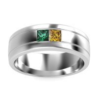 This mens Emerald ring features AAAA gemstones, along with fine quality Citrine. This mens 14k White Gold ring will stand the test of time, mirroring the bond it symbolizes. This Modern Men's Band Features A Striking Three-row Design with Two Princess-cut Stones Set in A Central Alignment, Creating A Contemporary Aesthetic. Unique mens wedding bands say what words can't - about his style, his passions, his love. Choose from a variety of gems and metals to make custom rings for men! Free shipping, returns, resizing, and a lifetime warranty make choosing this product easy.