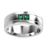 This Platinum Emerald mens wedding ring features top quality Emerald, amongst those found in fine jewelry boutiques across the world. This mens ring can be worn as a mens Emerald wedding band, or it can be worn as a general mens gemstone ring. This Modern Men's Band Features A Striking Three-row Design with Two Princess-cut Stones Set in A Central Alignment, Creating A Contemporary Aesthetic. Enjoy total worry-free shopping with our free shipping, returns, resizing, and lifetime warranty.