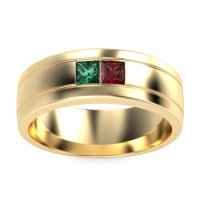 This mens Emerald ring features AAAA gemstones, along with fine quality Ruby. This mens 14k Yellow Gold ring will stand the test of time, mirroring the bond it symbolizes. This Modern Men's Band Features A Striking Three-row Design with Two Princess-cut Stones Set in A Central Alignment, Creating A Contemporary Aesthetic. Unique mens wedding bands say what words can't - about his style, his passions, his love. Choose from a variety of gems and metals to make custom rings for men! Free shipping, returns, resizing, and a lifetime warranty make choosing this product easy.
