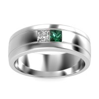 This mens Lab Diamond ring features AAAA gemstones, along with fine quality Emerald. This mens 14k White Gold ring will stand the test of time, mirroring the bond it symbolizes. This Modern Men's Band Features A Striking Three-row Design with Two Princess-cut Stones Set in A Central Alignment, Creating A Contemporary Aesthetic. Unique mens wedding bands say what words can't - about his style, his passions, his love. Choose from a variety of gems and metals to make custom rings for men! Free shipping, returns, resizing, and a lifetime warranty make choosing this product easy.