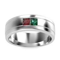 This mens Ruby ring features AAAA gemstones, along with fine quality Emerald. This mens Palladium ring will stand the test of time, mirroring the bond it symbolizes. This Modern Men's Band Features A Striking Three-row Design with Two Princess-cut Stones Set in A Central Alignment, Creating A Contemporary Aesthetic. Unique mens wedding bands say what words can't - about his style, his passions, his love. Choose from a variety of gems and metals to make custom rings for men! Free shipping, returns, resizing, and a lifetime warranty make choosing this product easy.
