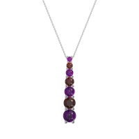 This Amethyst and Garnet Necklace is casted in 18k White Gold. This Women’s Classic necklace features exceptionally fine gemstones, on par with those found in the world's most exclusive boutiques and among the top 10% available globally. Linear Pendant Featuring A Graduated Series Of Round Stones, increasing in Size From Top To Bottom. A Sleek And Stylish Design. This necklace comes with a complimentary 18-inch chain. Enjoy the confidence of our 30-day, stress-free return policy—with return shipping fully covered. Each piece is also accompanied by a Lifetime Warranty, ensuring lasting beauty and peace of mind.