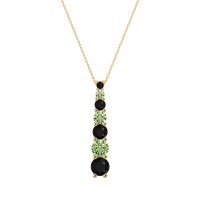 This Black Onyx and Peridot Necklace is casted in 14k Yellow Gold. This Women’s Classic necklace features exceptionally fine gemstones, on par with those found in the world's most exclusive boutiques and among the top 10% available globally. Linear Pendant Featuring A Graduated Series Of Round Stones, increasing in Size From Top To Bottom. A Sleek And Stylish Design. This necklace comes with a complimentary 18-inch chain. Enjoy the confidence of our 30-day, stress-free return policy—with return shipping fully covered. Each piece is also accompanied by a Lifetime Warranty, ensuring lasting beauty and peace of mind.