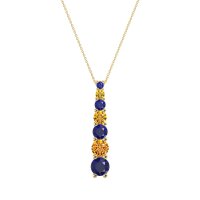 This Blue Sapphire and Citrine Necklace is casted in 14k Yellow Gold. This Women’s Classic necklace features exceptionally fine gemstones, on par with those found in the world's most exclusive boutiques and among the top 10% available globally. Linear Pendant Featuring A Graduated Series Of Round Stones, increasing in Size From Top To Bottom. A Sleek And Stylish Design. This necklace comes with a complimentary 18-inch chain. Enjoy the confidence of our 30-day, stress-free return policy—with return shipping fully covered. Each piece is also accompanied by a Lifetime Warranty, ensuring lasting beauty and peace of mind.
