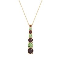 This Garnet and Peridot Necklace is casted in 14k Yellow Gold. This Women’s Classic necklace features exceptionally fine gemstones, on par with those found in the world's most exclusive boutiques and among the top 10% available globally. Linear Pendant Featuring A Graduated Series Of Round Stones, increasing in Size From Top To Bottom. A Sleek And Stylish Design. This necklace comes with a complimentary 18-inch chain. Enjoy the confidence of our 30-day, stress-free return policy—with return shipping fully covered. Each piece is also accompanied by a Lifetime Warranty, ensuring lasting beauty and peace of mind.