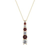 This Lab Diamond and Ruby Necklace is casted in 14k Yellow Gold. This Women’s Classic necklace features exceptionally fine gemstones, on par with those found in the world's most exclusive boutiques and among the top 10% available globally. Linear Pendant Featuring A Graduated Series Of Round Stones, increasing in Size From Top To Bottom. A Sleek And Stylish Design. This necklace comes with a complimentary 18-inch chain. Enjoy the confidence of our 30-day, stress-free return policy—with return shipping fully covered. Each piece is also accompanied by a Lifetime Warranty, ensuring lasting beauty and peace of mind.