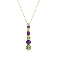 This Peridot and Amethyst Necklace is casted in 14k Yellow Gold. This Women’s Classic necklace features exceptionally fine gemstones, on par with those found in the world's most exclusive boutiques and among the top 10% available globally. Linear Pendant Featuring A Graduated Series Of Round Stones, increasing in Size From Top To Bottom. A Sleek And Stylish Design. This necklace comes with a complimentary 18-inch chain. Enjoy the confidence of our 30-day, stress-free return policy—with return shipping fully covered. Each piece is also accompanied by a Lifetime Warranty, ensuring lasting beauty and peace of mind.