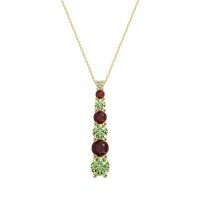 This Peridot and Ruby Necklace is casted in 14k Yellow Gold. This Women’s Classic necklace features exceptionally fine gemstones, on par with those found in the world's most exclusive boutiques and among the top 10% available globally. Linear Pendant Featuring A Graduated Series Of Round Stones, increasing in Size From Top To Bottom. A Sleek And Stylish Design. This necklace comes with a complimentary 18-inch chain. Enjoy the confidence of our 30-day, stress-free return policy—with return shipping fully covered. Each piece is also accompanied by a Lifetime Warranty, ensuring lasting beauty and peace of mind.