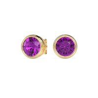 These 18k Yellow Gold Amethyst earrings feature top quality Natural Amethyst gemstones. Each Earring Features A Brilliant Round-cut Stone, Securely Encased In A Smooth, Polished Bezel Setting. This Distinct Setting Not Only Provides Exceptional Security For The Stone But Also Creates A Clean, Sophisticated Frame That Maximizes Its Visual Presence. Free shipping, returns, and a lifetime warranty make luxury worry-free