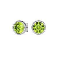 These 18k White Gold Peridot earrings feature top quality Natural Peridot gemstones. Each Earring Features A Brilliant Round-cut Stone, Securely Encased In A Smooth, Polished Bezel Setting. This Distinct Setting Not Only Provides Exceptional Security For The Stone But Also Creates A Clean, Sophisticated Frame That Maximizes Its Visual Presence. Free shipping, returns, and a lifetime warranty make luxury worry-free