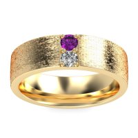 This mens Amethyst ring features AAAA gemstones, along with fine quality Diamond. This mens 14k Yellow Gold ring will stand the test of time, mirroring the bond it symbolizes. This Striking Men's Band Boasts A Unique Sandblast Finish, Elevating It To A Piece Of Wearable Art. Unique mens wedding bands say what words can't - about his style, his passions, his love. Choose from a variety of gems and metals to make custom rings for men! Free shipping, returns, resizing, and a lifetime warranty make choosing this product easy.