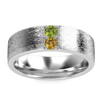 This mens Peridot ring features AAAA gemstones, along with fine quality Citrine. This mens 18k White Gold ring will stand the test of time, mirroring the bond it symbolizes. This Striking Men's Band Boasts A Unique Sandblast Finish, Elevating It To A Piece Of Wearable Art. Unique mens wedding bands say what words can't - about his style, his passions, his love. Choose from a variety of gems and metals to make custom rings for men! Free shipping, returns, resizing, and a lifetime warranty make choosing this product easy.