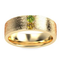 This mens Peridot ring features AAAA gemstones, along with fine quality Citrine. This mens 14k Yellow Gold ring will stand the test of time, mirroring the bond it symbolizes. This Striking Men's Band Boasts A Unique Sandblast Finish, Elevating It To A Piece Of Wearable Art. Unique mens wedding bands say what words can't - about his style, his passions, his love. Choose from a variety of gems and metals to make custom rings for men! Free shipping, returns, resizing, and a lifetime warranty make choosing this product easy.