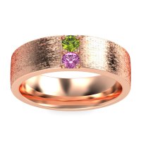 This mens Peridot ring features AAAA gemstones, along with fine quality Pink Tourmaline. This mens 14K Rose Gold ring will stand the test of time, mirroring the bond it symbolizes. This Striking Men's Band Boasts A Unique Sandblast Finish, Elevating It To A Piece Of Wearable Art. Unique mens wedding bands say what words can't - about his style, his passions, his love. Choose from a variety of gems and metals to make custom rings for men! Free shipping, returns, resizing, and a lifetime warranty make choosing this product easy.