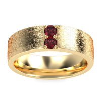 This 18k Yellow Gold Ruby mens wedding ring features top quality Ruby, amongst those found in fine jewelry boutiques across the world. This mens ring can be worn as a mens Ruby wedding band, or it can be worn as a general mens gemstone ring. This Striking Men's Band Boasts A Unique Sandblast Finish, Elevating It To A Piece Of Wearable Art. Enjoy total worry-free shopping with our free shipping, returns, resizing, and lifetime warranty.