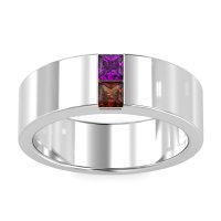 This mens Amethyst ring features AAAA gemstones, along with fine quality Garnet. This mens Platinum ring will stand the test of time, mirroring the bond it symbolizes. This Modern Men's Band Features A Unique Two-row Design with Two Princess-cut Stones Set in The Center, Side By Side, Making This A Minimalist Option. Unique mens wedding bands say what words can't - about his style, his passions, his love. Choose from a variety of gems and metals to make custom rings for men! Free shipping, returns, resizing, and a lifetime warranty make choosing this product easy.