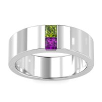 This mens Peridot ring features AAAA gemstones, along with fine quality Amethyst. This mens Palladium ring will stand the test of time, mirroring the bond it symbolizes. This Modern Men's Band Features A Unique Two-row Design with Two Princess-cut Stones Set in The Center, Side By Side, Making This A Minimalist Option. Unique mens wedding bands say what words can't - about his style, his passions, his love. Choose from a variety of gems and metals to make custom rings for men! Free shipping, returns, resizing, and a lifetime warranty make choosing this product easy.