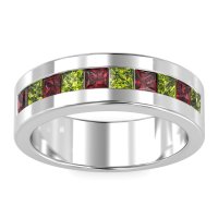 This mens Peridot ring features AAAA gemstones, along with fine quality Ruby. This mens Palladium ring will stand the test of time, mirroring the bond it symbolizes. This Princess Cut Men's Band Features A Row Of Princess Cut Gemstones Aligned Centrally On The Top Of The Ring. Width Of This Ring Is 7mm. Unique mens wedding bands say what words can't - about his style, his passions, his love. Choose from a variety of gems and metals to make custom rings for men! Free shipping, returns, resizing, and a lifetime warranty make choosing this product easy.