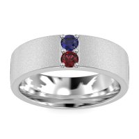 This mens Blue Sapphire ring features AAAA gemstones, along with fine quality Ruby. This mens Platinum ring will stand the test of time, mirroring the bond it symbolizes. This Classic Men's Band Features Two Beautiful Gemstones Seamlessly Set Side-by-side, Covering The Entire Width Of The Ring For A Striking Look. Unique mens wedding bands say what words can't - about his style, his passions, his love. Choose from a variety of gems and metals to make custom rings for men! Free shipping, returns, resizing, and a lifetime warranty make choosing this product easy.