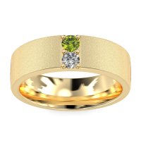 This mens Peridot ring features AAAA gemstones, along with fine quality Lab Diamond. This mens 18k Yellow Gold ring will stand the test of time, mirroring the bond it symbolizes. This Classic Men's Band Features Two Beautiful Gemstones Seamlessly Set Side-by-side, Covering The Entire Width Of The Ring For A Striking Look. Unique mens wedding bands say what words can't - about his style, his passions, his love. Choose from a variety of gems and metals to make custom rings for men! Free shipping, returns, resizing, and a lifetime warranty make choosing this product easy.