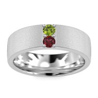This mens Peridot ring features AAAA gemstones, along with fine quality Ruby. This mens Palladium ring will stand the test of time, mirroring the bond it symbolizes. This Classic Men's Band Features Two Beautiful Gemstones Seamlessly Set Side-by-side, Covering The Entire Width Of The Ring For A Striking Look. Unique mens wedding bands say what words can't - about his style, his passions, his love. Choose from a variety of gems and metals to make custom rings for men! Free shipping, returns, resizing, and a lifetime warranty make choosing this product easy.