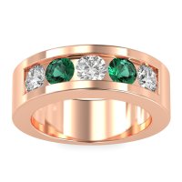 This mens Lab Diamond ring features AAAA gemstones, along with fine quality Emerald. This mens 18K Rose Gold ring will stand the test of time, mirroring the bond it symbolizes. with Several Diamonds Securely Held in A Channel Setting Across The Top, This Attractive 8mm Men's Band Offers A Timeless And Sophisticated Look. Unique mens wedding bands say what words can't - about his style, his passions, his love. Choose from a variety of gems and metals to make custom rings for men! Free shipping, returns, resizing, and a lifetime warranty make choosing this product easy.