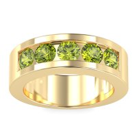 This 14k Yellow Gold Peridot mens wedding ring features top quality Peridot, amongst those found in fine jewelry boutiques across the world. This mens ring can be worn as a mens Peridot wedding band, or it can be worn as a general mens gemstone ring. with Several Diamonds Securely Held in A Channel Setting Across The Top, This Attractive 8mm Men's Band Offers A Timeless And Sophisticated Look. Enjoy total worry-free shopping with our free shipping, returns, resizing, and lifetime warranty.