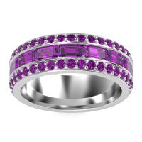 This 18k White Gold Amethyst mens wedding ring features top quality Amethyst, amongst those found in fine jewelry boutiques across the world. This mens ring can be worn as a mens Amethyst wedding band, or it can be worn as a general mens gemstone ring. This Three-row Men's Eternity Band Offers A Captivating Contrast in Stone Cuts, Featuring An Emerald-cut Center Framed By Two Rows Of Round Stones. Width Of This Ring Is 8mm. Enjoy total worry-free shopping with our free shipping, returns, resizing, and lifetime warranty.