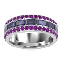 This mens Blue Sapphire ring features AAAA gemstones, along with fine quality Amethyst. This mens Palladium ring will stand the test of time, mirroring the bond it symbolizes. This Three-row Men's Eternity Band Offers A Captivating Contrast in Stone Cuts, Featuring An Emerald-cut Center Framed By Two Rows Of Round Stones. Width Of This Ring Is 8mm. Unique mens wedding bands say what words can't - about his style, his passions, his love. Choose from a variety of gems and metals to make custom rings for men! Free shipping, returns, resizing, and a lifetime warranty make choosing this product easy.