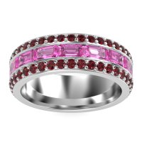 This mens Pink Tourmaline ring features AAAA gemstones, along with fine quality Ruby. This mens 14k White Gold ring will stand the test of time, mirroring the bond it symbolizes. This Three-row Men's Eternity Band Offers A Captivating Contrast in Stone Cuts, Featuring An Emerald-cut Center Framed By Two Rows Of Round Stones. Width Of This Ring Is 8mm. Unique mens wedding bands say what words can't - about his style, his passions, his love. Choose from a variety of gems and metals to make custom rings for men! Free shipping, returns, resizing, and a lifetime warranty make choosing this product easy.
