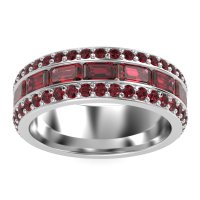 This Palladium Ruby mens wedding ring features top quality Ruby, amongst those found in fine jewelry boutiques across the world. This mens ring can be worn as a mens Ruby wedding band, or it can be worn as a general mens gemstone ring. This Three-row Men's Eternity Band Offers A Captivating Contrast in Stone Cuts, Featuring An Emerald-cut Center Framed By Two Rows Of Round Stones. Width Of This Ring Is 8mm. Enjoy total worry-free shopping with our free shipping, returns, resizing, and lifetime warranty.