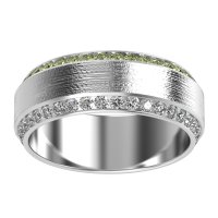 This mens Peridot ring features AAAA gemstones, along with fine quality Lab Diamond. This mens Platinum ring will stand the test of time, mirroring the bond it symbolizes. This Unique 8mm Men's Eternity Band Features Two Edged Rows Of Gemstones And A Textured Brushstroke Finish in The Center. Unique mens wedding bands say what words can't - about his style, his passions, his love. Choose from a variety of gems and metals to make custom rings for men! Free shipping, returns, resizing, and a lifetime warranty make choosing this product easy.