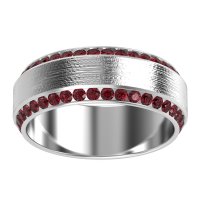This Platinum Ruby mens wedding ring features top quality Ruby, amongst those found in fine jewelry boutiques across the world. This mens ring can be worn as a mens Ruby wedding band, or it can be worn as a general mens gemstone ring. This Unique 8mm Men's Eternity Band Features Two Edged Rows Of Gemstones And A Textured Brushstroke Finish in The Center. Enjoy total worry-free shopping with our free shipping, returns, resizing, and lifetime warranty.