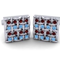 These personalized cufflinks feature Garnet and Swiss Blue Topaz. We only use the top 10% of gemstones available, every facet meticulously placed, they create a masterpiece of radiance that captivates the senses. This Pair Of Cufflinks Features A Gemstone And Metal Design That Compliments Textured Fabrics. A Square Face Is Accented with Gems in Between Woven Metal Bands. Each Cufflink Hosts 16 Brilliant Round Gems Of Your Choice in A Pave Setting Over The Face Of The Piece. For the one who appreciates the finer things, these mens cufflinks are an unspoken badge of distinction. Choose from a variety of gems to make a truly unique pair of custom cufflinks. Enjoy free shipping, free returns and a lifetime warranty.