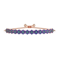 These 14K Rose Gold bracelets feature fine quality Blue Sapphire gemstones. This Bolo Bracelet Features Charming Flower-shaped Settings, Each Center Gemstone Is Delicately Sparkling with Surrounding Gemstones. The Adjustable Chain Lets You Tailor The Fit. Free shipping, returns, and a lifetime warranty make luxury worry-free