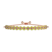 These 14K Rose Gold bracelets feature fine quality Peridot gemstones. This Bolo Bracelet Features Charming Flower-shaped Settings, Each Center Gemstone Is Delicately Sparkling with Surrounding Gemstones. The Adjustable Chain Lets You Tailor The Fit. Free shipping, returns, and a lifetime warranty make luxury worry-free