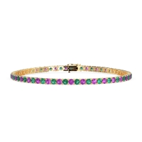 These 14k Yellow Gold bracelets feature fine quality Amethyst gemstones. This Classic Tennis Bracelet Seamlessly Transitions From Day To Night. Wear It Alone For A Touch Of Sophisticated Sparkle Or Stack It with Other Bracelets For A Bolder Statement. It Complements A Variety Of Styles, Making It A Versatile Piece You Can Treasure For Years To Come. Free shipping, returns, and a lifetime warranty make luxury worry-free