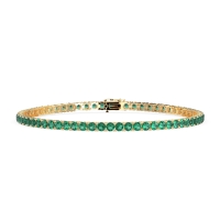 These 14k Yellow Gold bracelets feature fine quality Emerald gemstones. This Classic Tennis Bracelet Seamlessly Transitions From Day To Night. Wear It Alone For A Touch Of Sophisticated Sparkle Or Stack It with Other Bracelets For A Bolder Statement. It Complements A Variety Of Styles, Making It A Versatile Piece You Can Treasure For Years To Come. Free shipping, returns, and a lifetime warranty make luxury worry-free