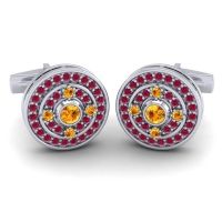 These personalized cufflinks feature Citrine and Ruby. We only use the top 10% of gemstones available, every facet meticulously placed, they create a masterpiece of radiance that captivates the senses. This Pair Of Cufflinks Features A Gemstone And Metal Design That Luxurious And Bold. Each Cufflink Hosts 35 Brilliant Round Gems in A Pave Setting And One Large Brilliant Round Gem in A Bezel Setting Of Your Choice Over The Face Of The Piece. For the one who appreciates the finer things, these mens cufflinks are an unspoken badge of distinction. Choose from a variety of gems to make a truly unique pair of custom cufflinks. Enjoy free shipping, free returns and a lifetime warranty.