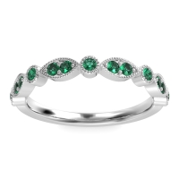 This Emerald wedding ring is set with AAAA Emerald, amongst the top 10% of material available. This ring can be casted in your choice of 9 metals. Emerald rings can be worn as gemstone wedding rings, or can even be stacked with your other gemstone rings. This Art-deco Style Womens Band Features Round Stones, Set To Form An Alternating Round And Marquise Shape. The Milgrain Finish Gives This Ring An Antique Style Finish. Choose from a variety of gems and metals to make truly unique custom rings! Free shipping, returns, resizing, and a lifetime warranty make choosing this product easy.
