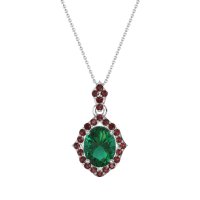 This Lab Emerald and Ruby Necklace is casted in Platinum. This Women’s Halo necklace features exceptionally fine gemstones, on par with those found in the world's most exclusive boutiques and among the top 10% available globally. This Art-deco inspired Pendant Features A Beautiful Oval Cut Stone, Set with A Antique Style Halo. This necklace comes with a complimentary 18-inch chain. Enjoy the confidence of our 30-day, stress-free return policy—with return shipping fully covered. Each piece is also accompanied by a Lifetime Warranty, ensuring lasting beauty and peace of mind.