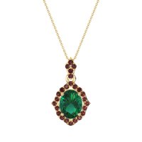 This Lab Emerald and Ruby Necklace is casted in 14k Yellow Gold. This Women’s Halo necklace features exceptionally fine gemstones, on par with those found in the world's most exclusive boutiques and among the top 10% available globally. This Art-deco inspired Pendant Features A Beautiful Oval Cut Stone, Set with A Antique Style Halo. This necklace comes with a complimentary 18-inch chain. Enjoy the confidence of our 30-day, stress-free return policy—with return shipping fully covered. Each piece is also accompanied by a Lifetime Warranty, ensuring lasting beauty and peace of mind.