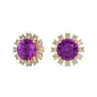 These Amethyst earrings and made in 14K Rose Gold with top quality Natural Amethyst and Peridot gemstones. These Stud Earrings Feature A Classic Halo Design With An Antique-inspired Aesthetic. A Brilliant Center Stone Is Encircled By A Sparkling Halo Of Smaller Gems, Offering Enhanced Brilliance And A Timeless, Vintage Charm. Perfect For Adding Refined Elegance To Any Look, These Studs Provide Significant Sparkle With A Sophisticated Touch. Free shipping, returns, and a lifetime warranty make luxury worry-free