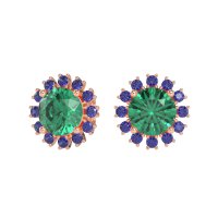 These Emerald earrings and made in 14K Rose Gold with top quality Natural Emerald and Blue Sapphire gemstones. These Stud Earrings Feature A Classic Halo Design With An Antique-inspired Aesthetic. A Brilliant Center Stone Is Encircled By A Sparkling Halo Of Smaller Gems, Offering Enhanced Brilliance And A Timeless, Vintage Charm. Perfect For Adding Refined Elegance To Any Look, These Studs Provide Significant Sparkle With A Sophisticated Touch. Free shipping, returns, and a lifetime warranty make luxury worry-free
