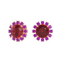 These Lab Ruby earrings and made in 14K Rose Gold with top quality Lab Ruby and Amethyst gemstones. These Stud Earrings Feature A Classic Halo Design With An Antique-inspired Aesthetic. A Brilliant Center Stone Is Encircled By A Sparkling Halo Of Smaller Gems, Offering Enhanced Brilliance And A Timeless, Vintage Charm. Perfect For Adding Refined Elegance To Any Look, These Studs Provide Significant Sparkle With A Sophisticated Touch. Free shipping, returns, and a lifetime warranty make luxury worry-free