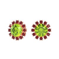 These Peridot earrings and made in 14K Rose Gold with top quality Natural Peridot and Ruby gemstones. These Stud Earrings Feature A Classic Halo Design With An Antique-inspired Aesthetic. A Brilliant Center Stone Is Encircled By A Sparkling Halo Of Smaller Gems, Offering Enhanced Brilliance And A Timeless, Vintage Charm. Perfect For Adding Refined Elegance To Any Look, These Studs Provide Significant Sparkle With A Sophisticated Touch. Free shipping, returns, and a lifetime warranty make luxury worry-free